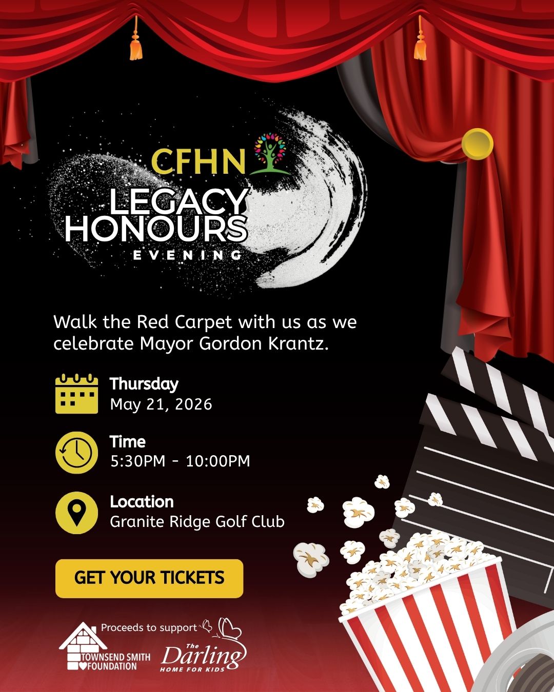 The CFHN Legacy Honours Evening honours a Transformational Canadian each year, from a wide variety of fields. We are thrilled to honour Mayor Gordon Krantz in 2026. Mayor Krantz has dedicated his entire life to support his community and improve the lives of others.